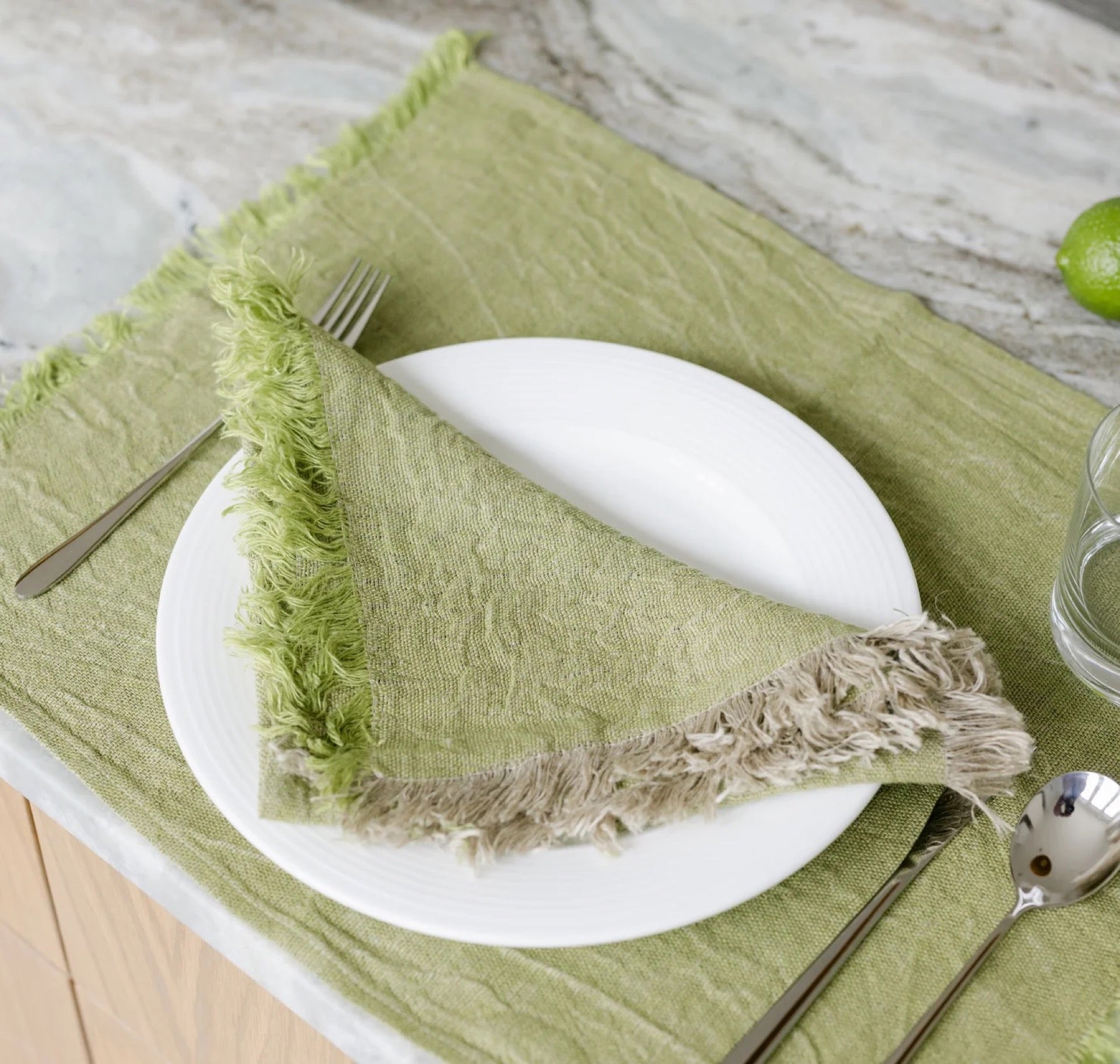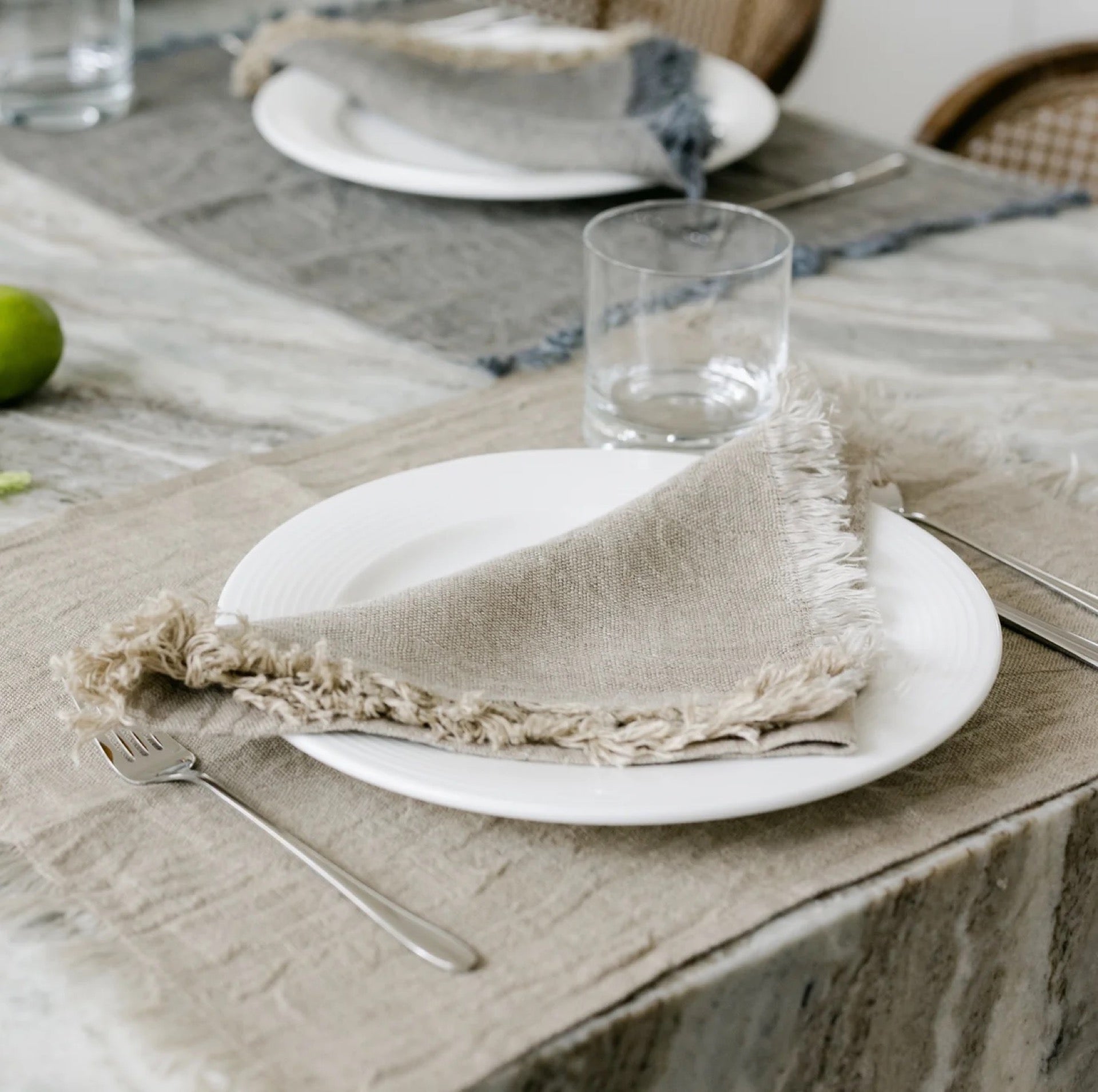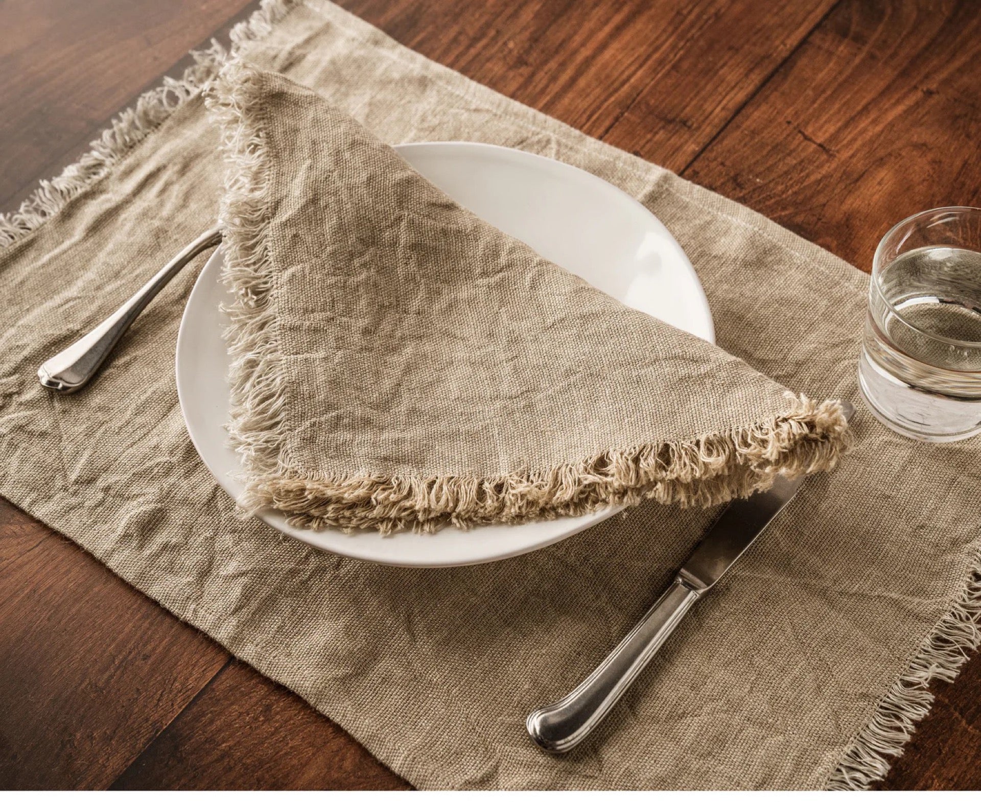 Enjoy the simple luxury of our Fringed Linen Napkin, crafted from 100% Italian linen. Its soft texture and classic design bring a touch of elegance to any table setting.