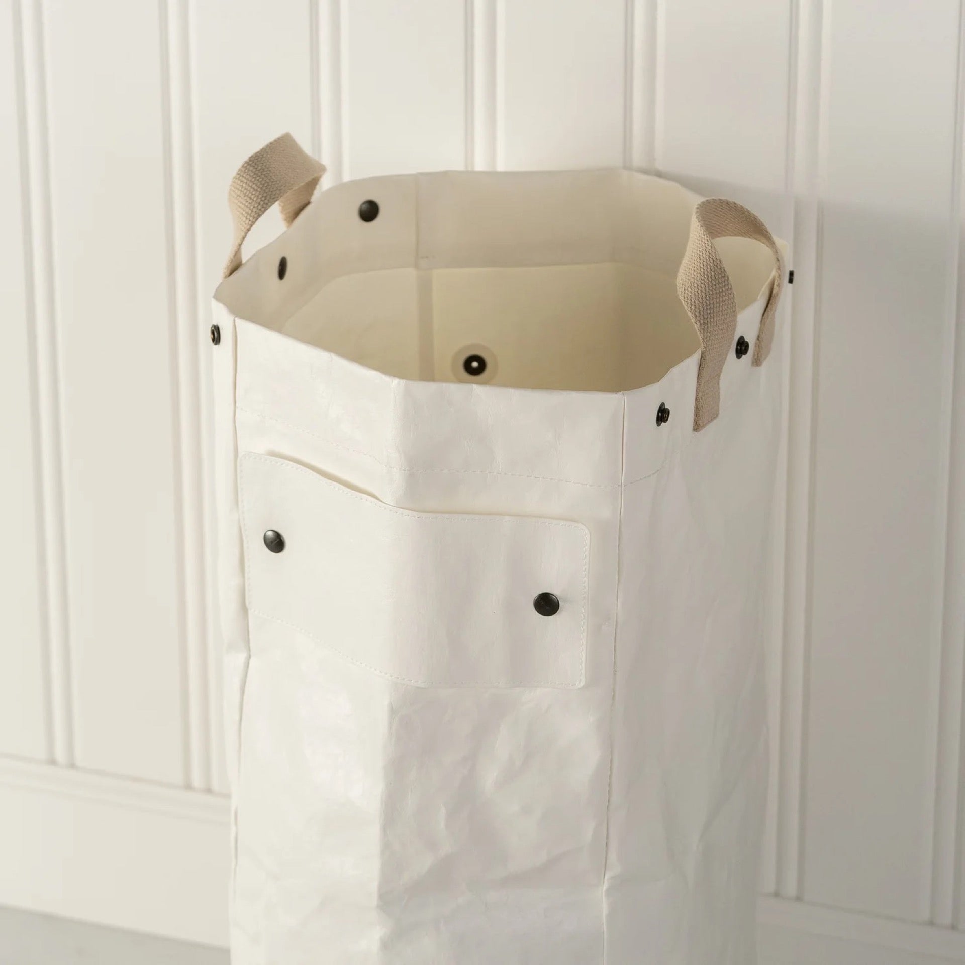 Adopt one, two, three or even four! Tall and narrow our laundry bag will fit into any tight or tricky washing space. The UASHMAMA ingenious laundry bag system allows you to separate your laundry with ease and as the family grows add more. Each individual paper bag has a press stud interlocking system that allows you to attach as many bags together as you like. With removable interchangeable labels you create yourself. Each laundry bag comes with one matching tag, these can also be purchased separately. Tip: write with chalk to reuse. The Laundry Bag is sold individually.