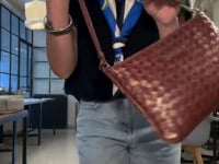 The bag can be hand washed or wiped clean. Wash in warm water using a mild detergent or soap, be sure to rinse thoroughly and reshape before drying. Do not wash the leather details.