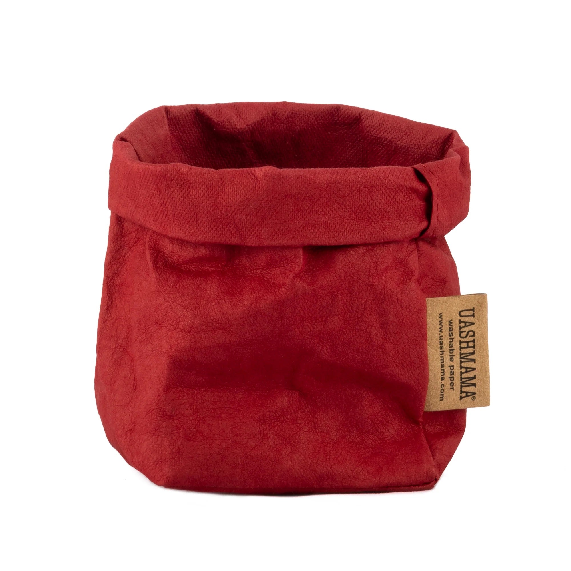 A washable paper bag is shown. The bag is rolled down at the top and features a UASHMAMA logo label on the bottom left corner. The bag pictured is the piccolo size in white.