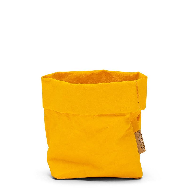 The Piccolo size, our second smallest paper bag, is perfect for various uses. In your kitchen, it can hold seasonings and small utensils, while in your office, it's ideal for organising stationery and craft supplies. It also works beautifully in your bathroom for makeup brushes or cotton balls, or as a holder for small potted plants. The height of the bag can be rolled up or down to suit its contents. Since each bag is handmade, dimensions may vary slightly, but it’s just the right size to keep your essentials neatly stored.